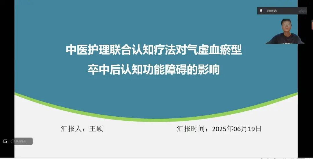 分享结束后,长春中医药大学附属第三临床医院护理管理部部长兼护理部主任李彬对两位同学的汇报进行点评并提出两点建议:一是研究方法设计应选用近五年高质量文献及最新临床指南指导,紧密结合临床实践优化方案;二是涉及中医护理技术需基于权威指南或共识明确适应症、机制与目标,并建立科学的观察指标及疗效评价体系确保结果可靠有效。