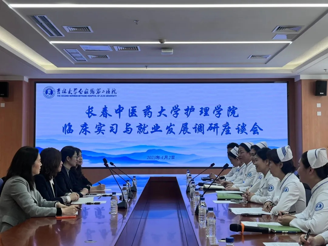 为进一步加强与用人单位及实践教学基地的沟通交流,2025年4月2日,护理学院党委书记李萍、副院长王洋、人文护理教研室主任黄卫东、教学秘书顾颜赴吉林大学白求恩第二医院开展调研座谈。吉林大学白求恩第二医院护理部主任程远娟、护理部副主任吴淑华、护士长及毕业生代表赵云婷、赵杰、张雪、闫明、柳天一、姜旭等参加座谈。